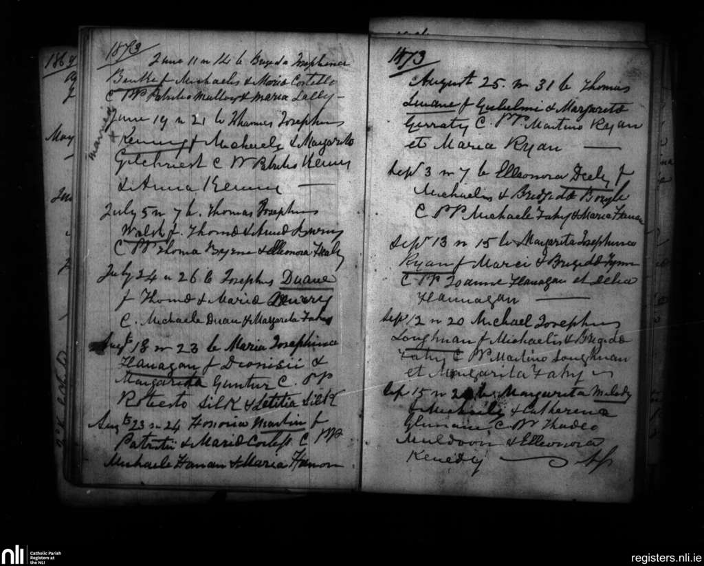 Leitrim; County of Galway; Diocese of Clonfert. Baptisms, June 1873 to Sep. 1873