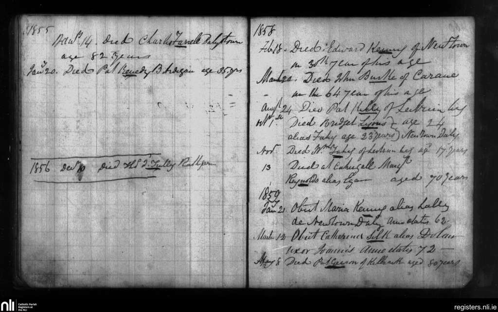 Leitrim; County of Galway; Diocese of Clonfert. Deaths, Jan. 1855 to May 1859