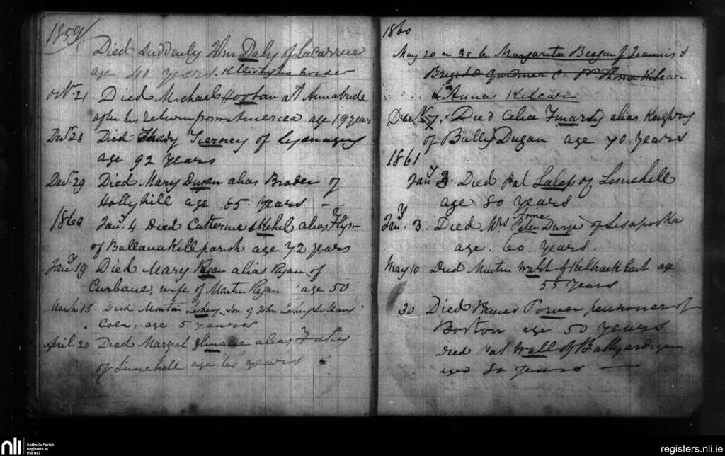 Leitrim; County of Galway; Diocese of Clonfert. Deaths, Oct. 1859 to May 1861