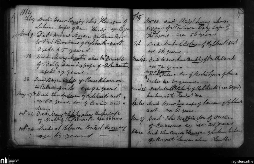 Leitrim; County of Galway; Diocese of Clonfert. Deaths, Feb. 1864 to July 1865