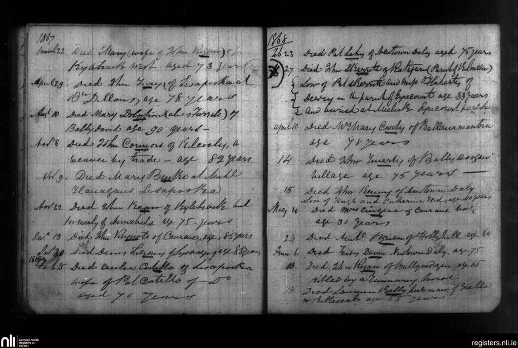 Leitrim; County of Galway; Diocese of Clonfert. Deaths, Mar. 1867 to June 1868