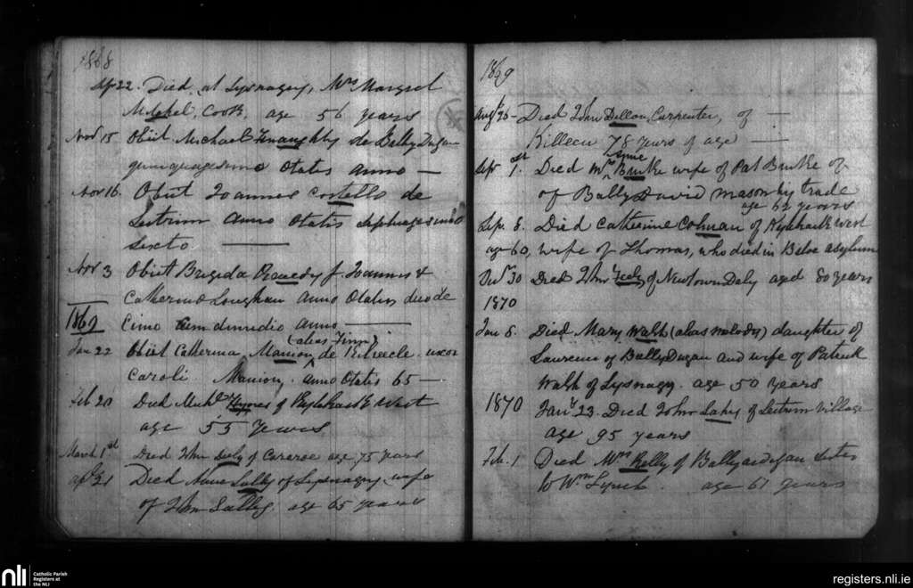 Leitrim; County of Galway; Diocese of Clonfert. Deaths, Sep. 1868 to Feb. 1870