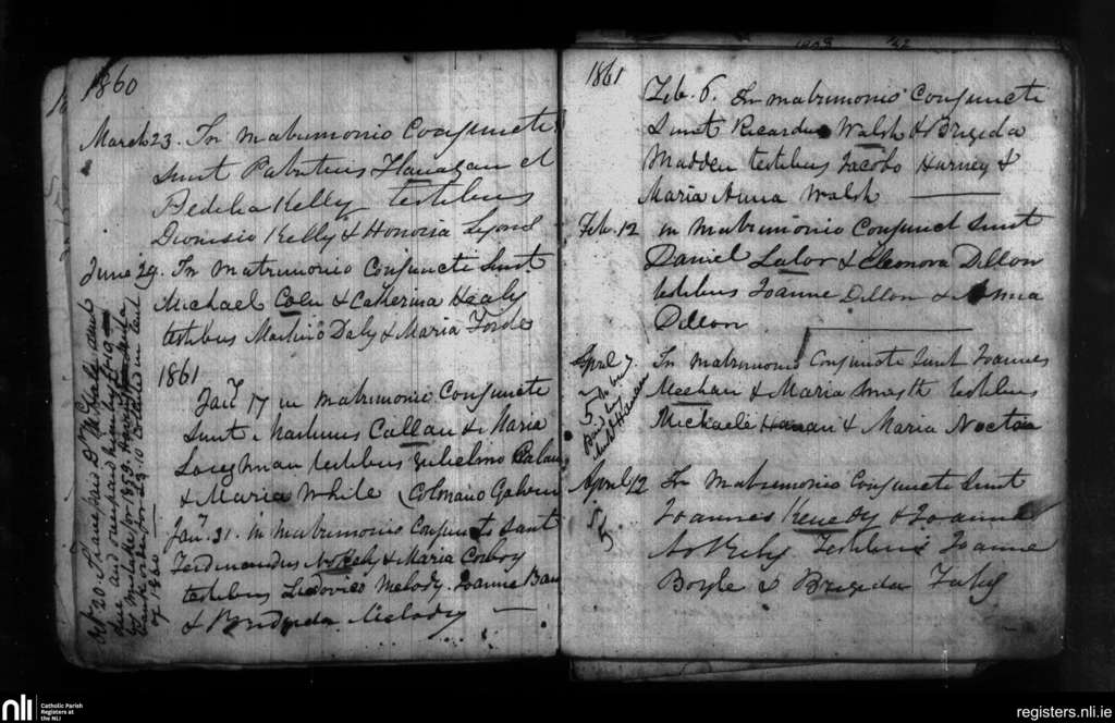 Leitrim; County of Galway; Diocese of Clonfert. Marriages, Mar. 1860 to Apr. 1861
