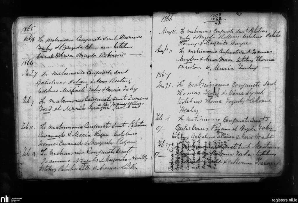 Leitrim; County of Galway; Diocese of Clonfert. Marriages, Oct. 1865 to Feb. 1867