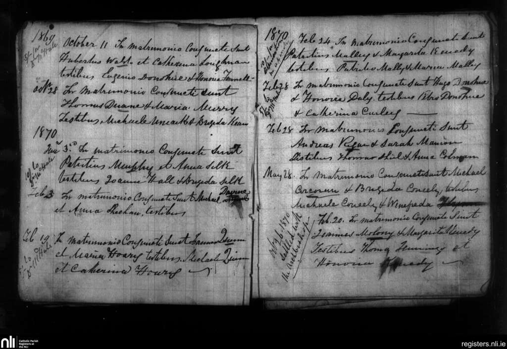 Leitrim; County of Galway; Diocese of Clonfert. Marriages, Oct. 1869 to May 1870