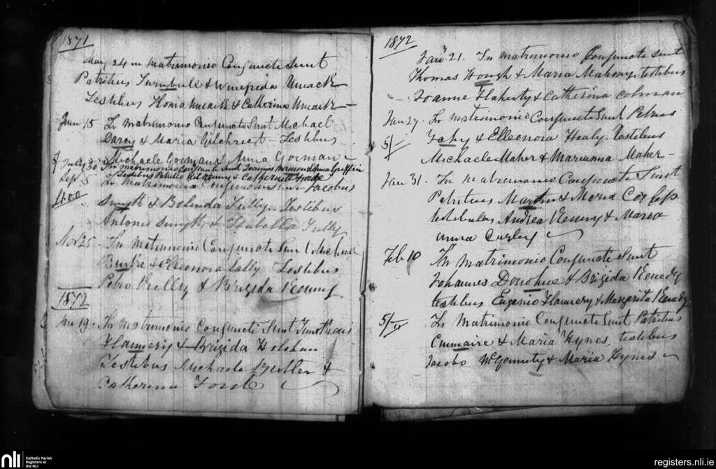 Leitrim; County of Galway; Diocese of Clonfert. Marriages, May 1871 to Feb. 1872