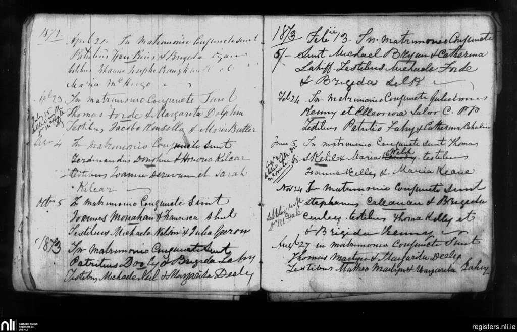 Leitrim; County of Galway; Diocese of Clonfert. Marriages, Apr. 1872 to Nov. 1873