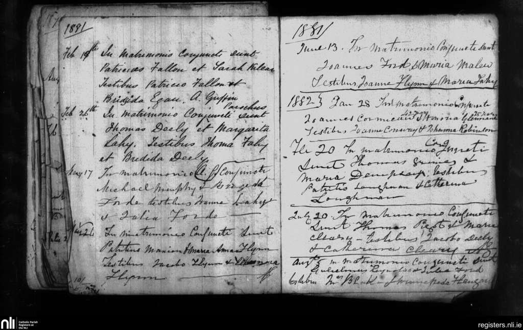 Leitrim; County of Galway; Diocese of Clonfert. Marriages, Feb. 1881 to Aug. 1882