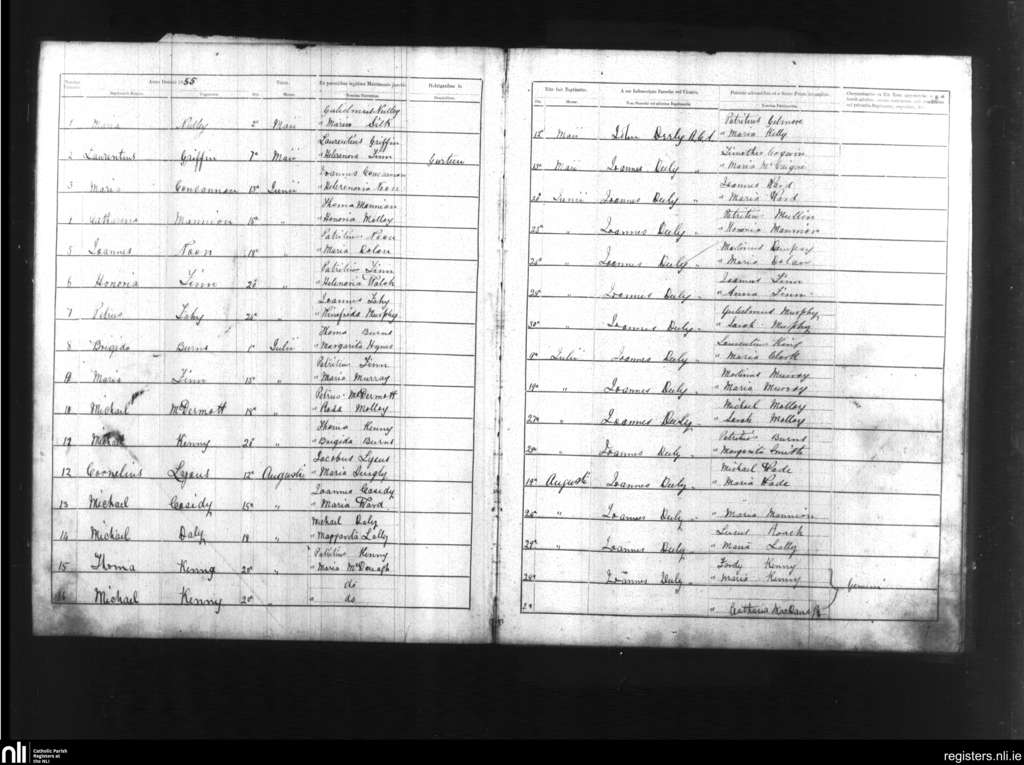 Ballymacward and Clonkeenkerrill; County of Galway; Diocese of Clonfert. Baptisms, May 1855 to Aug. 1855