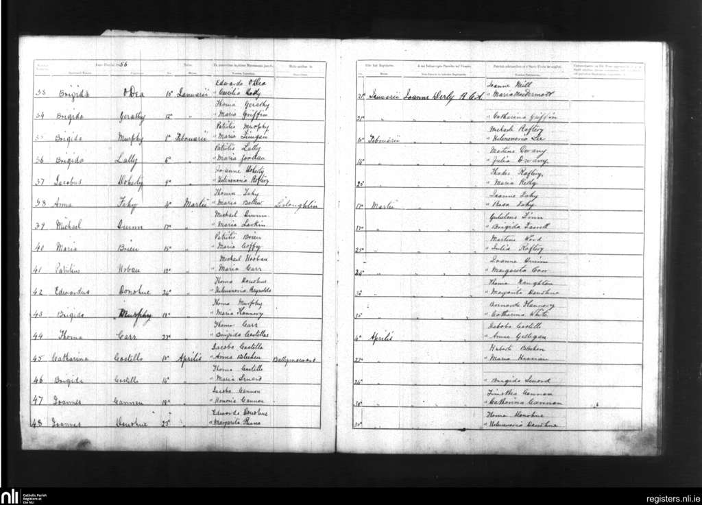 Ballymacward and Clonkeenkerrill; County of Galway; Diocese of Clonfert. Baptisms, Jan. 1856 to Apr. 1856