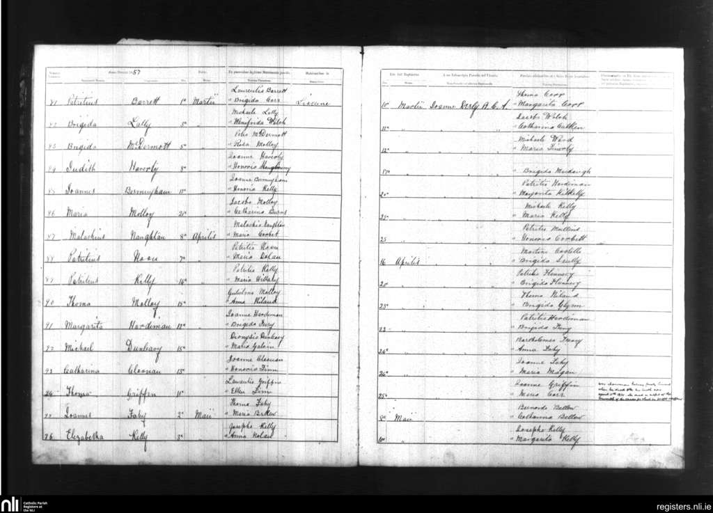 Ballymacward and Clonkeenkerrill; County of Galway; Diocese of Clonfert. Baptisms, Mar. 1857 to May 1857