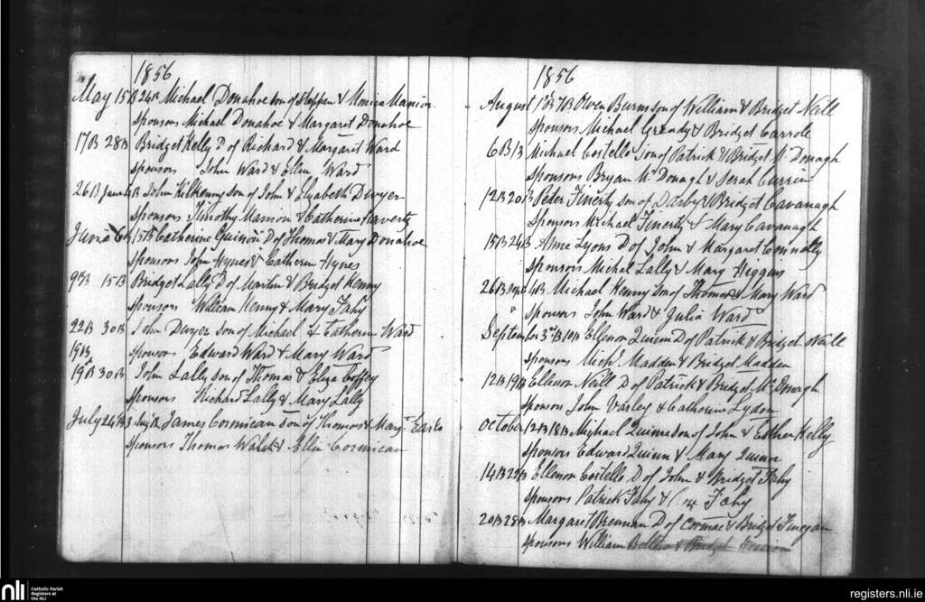 Ballymacward and Clonkeenkerrill; County of Galway; Diocese of Clonfert. Baptisms, May 1856 to Oct. 1856