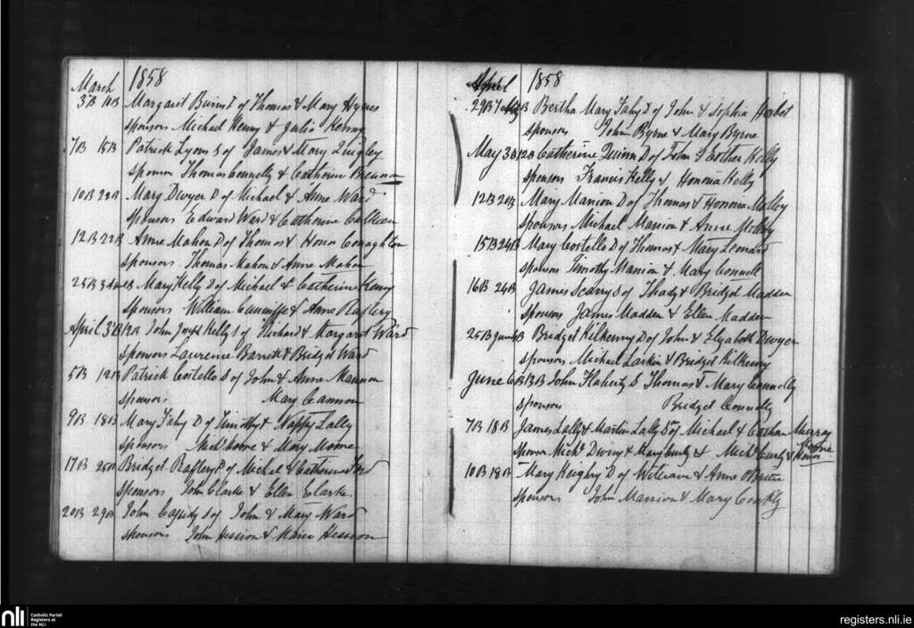 Ballymacward and Clonkeenkerrill; County of Galway; Diocese of Clonfert. Baptisms, Mar. 1858 to June 1858