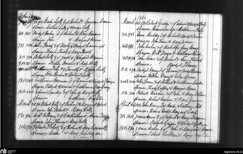 Ballymacward and Clonkeenkerrill; County of Galway; Diocese of Clonfert. Baptisms, Feb. 1860 to Apr. 1860
