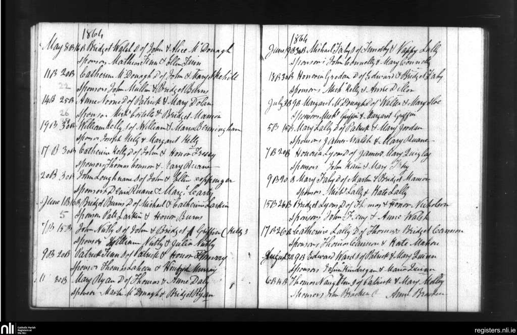 Ballymacward and Clonkeenkerrill; County of Galway; Diocese of Clonfert. Baptisms, May 1864 to Aug. 1864