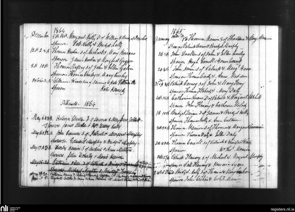 Ballymacward and Clonkeenkerrill; County of Galway; Diocese of Clonfert. Baptisms, May 1864 to Jan. 1865