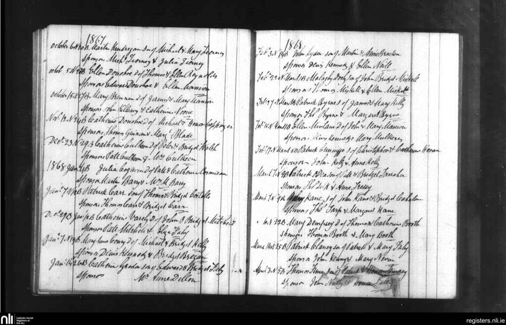 Ballymacward and Clonkeenkerrill; County of Galway; Diocese of Clonfert. Baptisms, Oct. 1867 to Apr. 1868