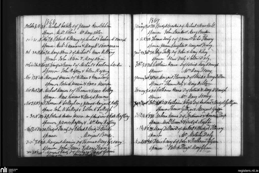 Ballymacward and Clonkeenkerrill; County of Galway; Diocese of Clonfert. Baptisms, Oct. 1868 to Mar. 1869