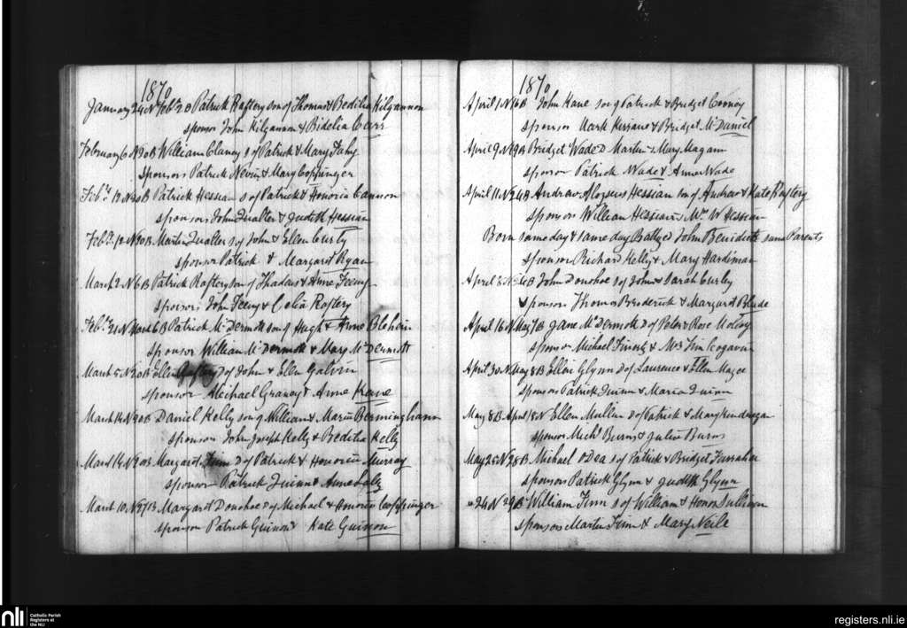 Ballymacward and Clonkeenkerrill; County of Galway; Diocese of Clonfert. Baptisms, Jan. 1870 to May 1870