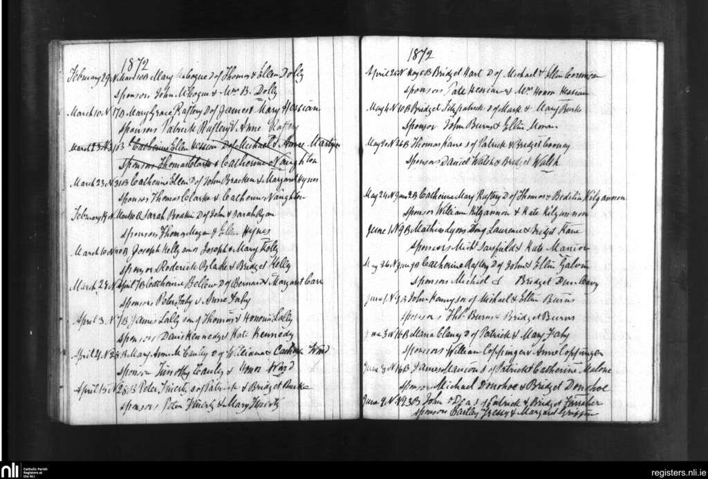 Ballymacward and Clonkeenkerrill; County of Galway; Diocese of Clonfert. Baptisms, Feb. 1872 to June 1872