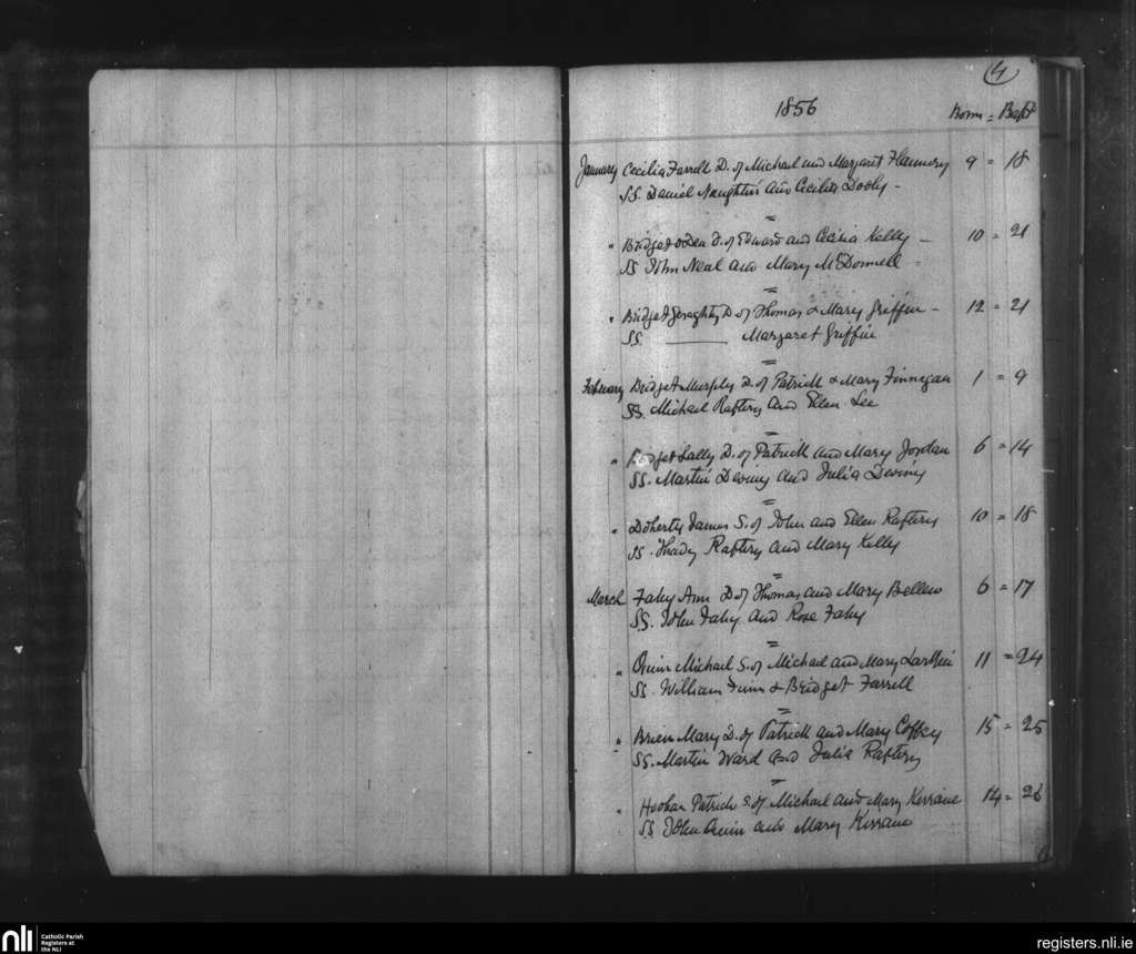 Ballymacward and Clonkeenkerrill; County of Galway; Diocese of Clonfert. Baptisms, Jan. 1856 to Mar. 1856