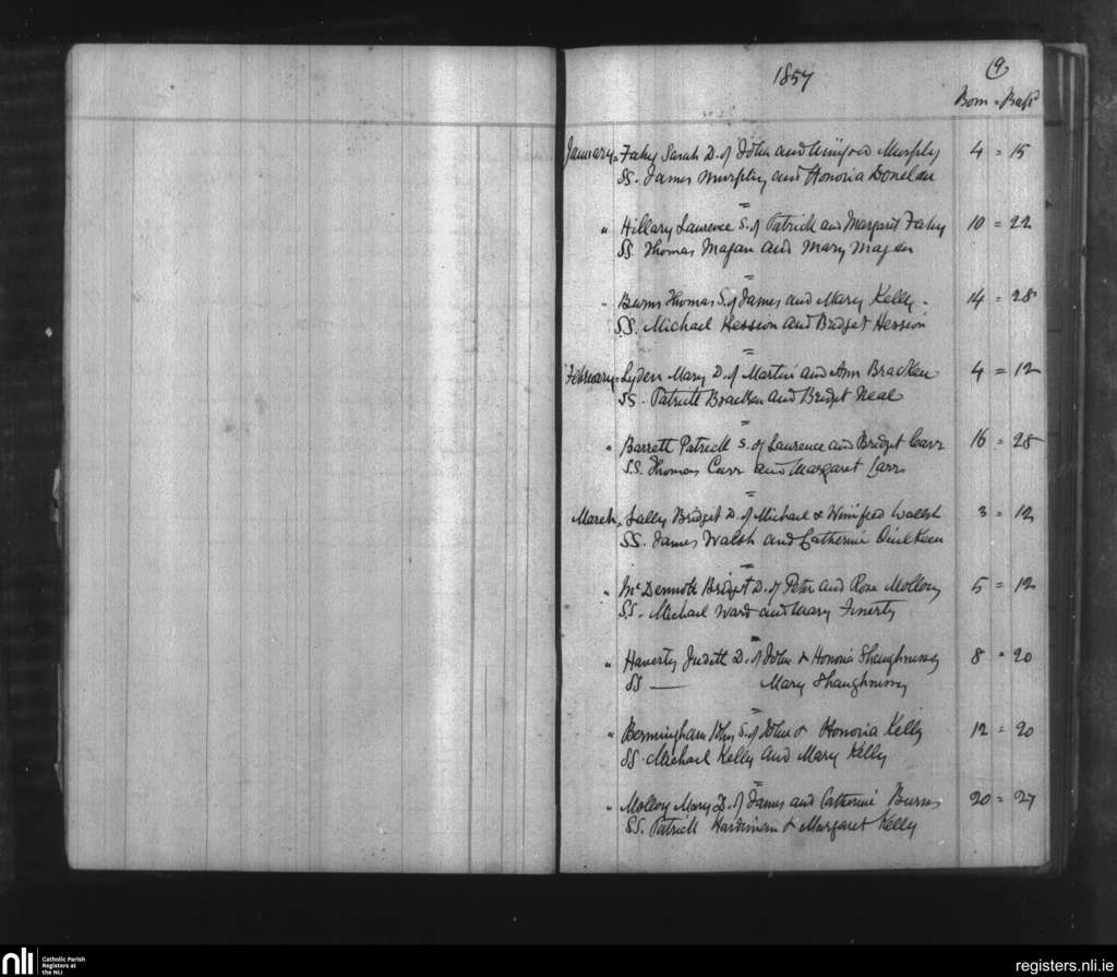 Ballymacward and Clonkeenkerrill; County of Galway; Diocese of Clonfert. Baptisms, Jan. 1857 to Mar. 1857