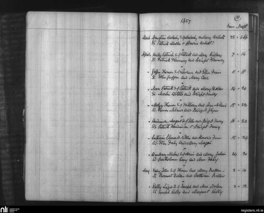Ballymacward and Clonkeenkerrill; County of Galway; Diocese of Clonfert. Baptisms, Mar. 1857 to May 1857