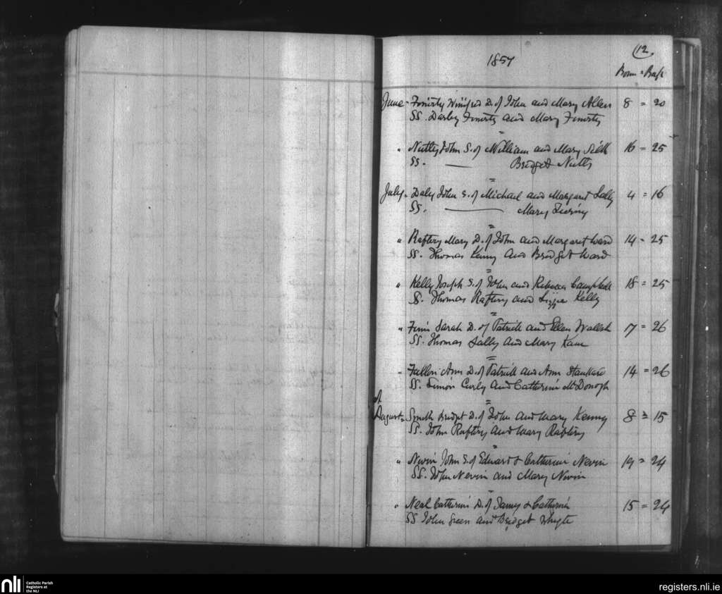 Ballymacward and Clonkeenkerrill; County of Galway; Diocese of Clonfert. Baptisms, June 1857 to Aug. 1857