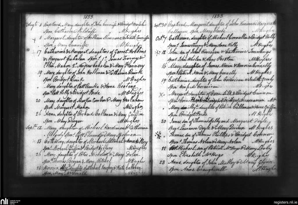 New Inn; County of Galway; Diocese of Clonfert. Baptisms, Aug. 1833 to Oct. 1833