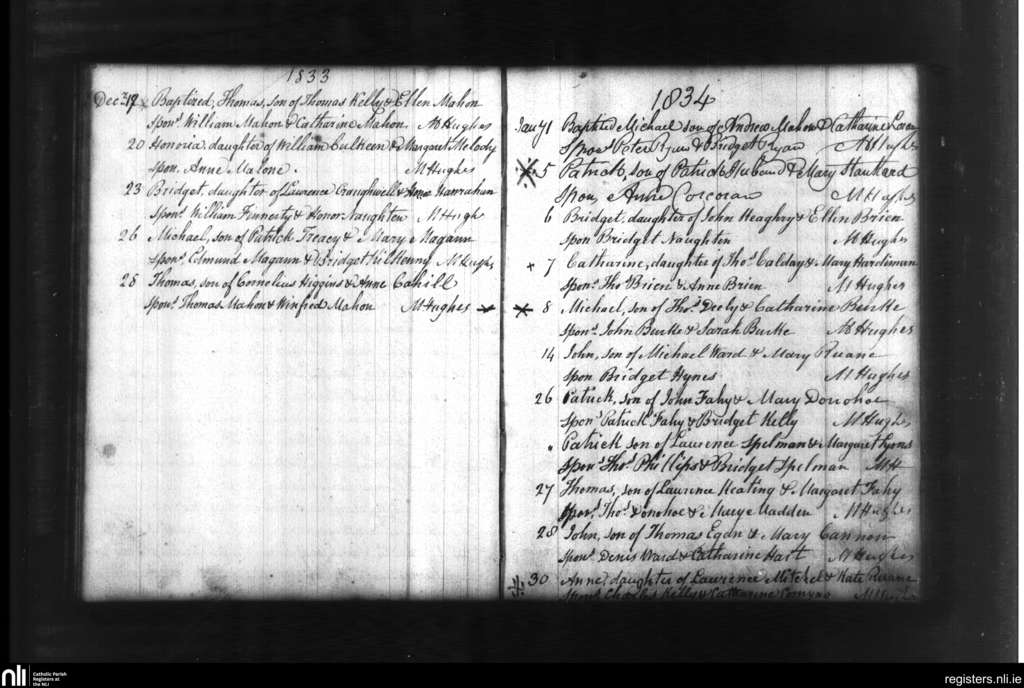 New Inn; County of Galway; Diocese of Clonfert. Baptisms, Dec. 1833 to Jan. 1834