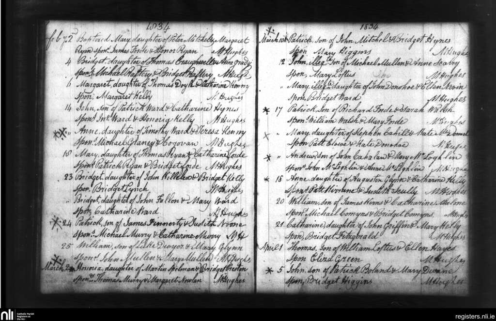 New Inn; County of Galway; Diocese of Clonfert. Baptisms, Feb. 1834 to Apr. 1834