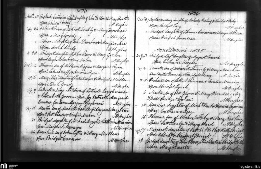 New Inn; County of Galway; Diocese of Clonfert. Baptisms, Nov. 1834 to Jan. 1835