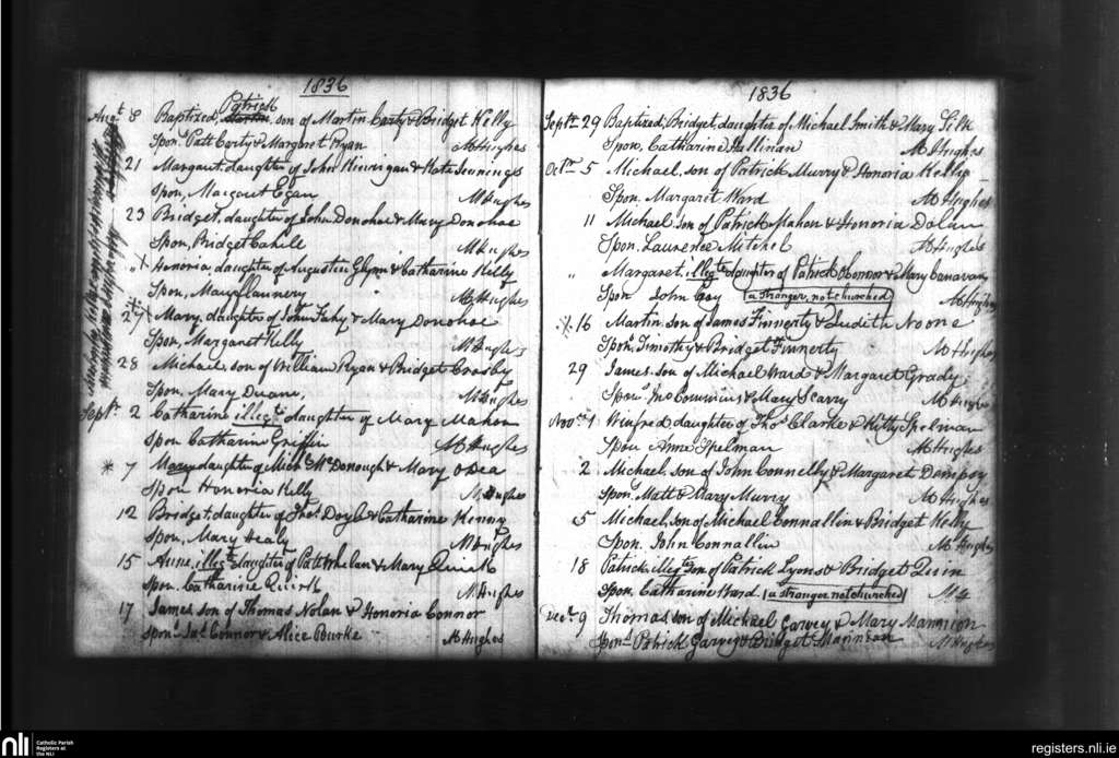 New Inn; County of Galway; Diocese of Clonfert. Baptisms, Aug. 1836 to Dec. 1836