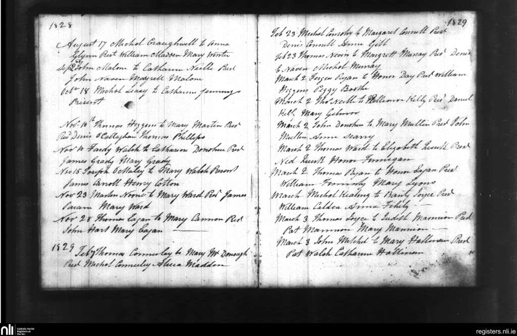 New Inn; County of Galway; Diocese of Clonfert. Marriages, Aug. 1828 to Mar. 1829