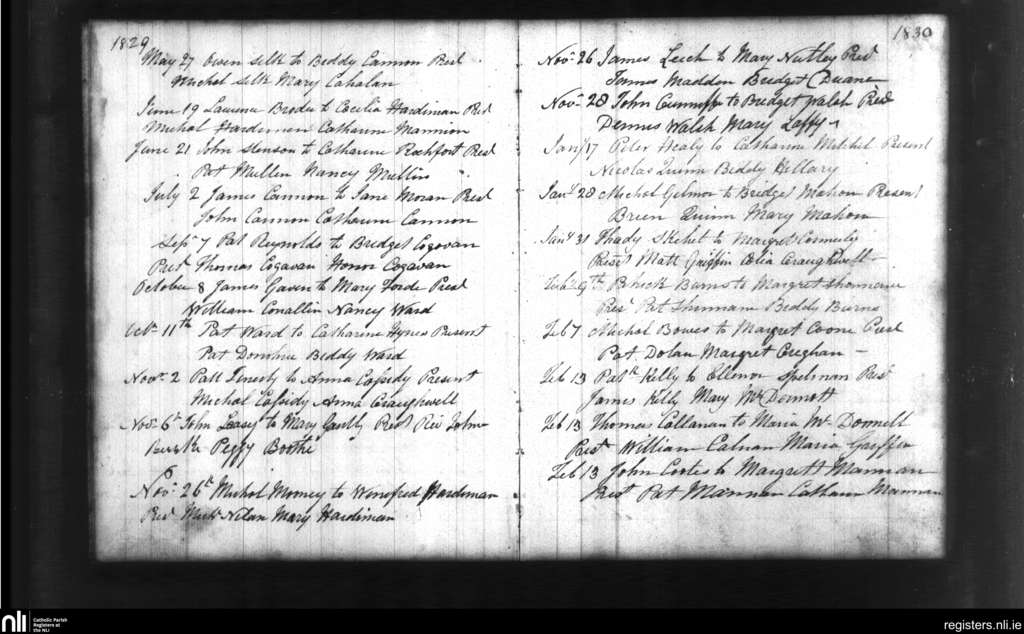 New Inn; County of Galway; Diocese of Clonfert. Marriages, May 1829 to Feb. 1830