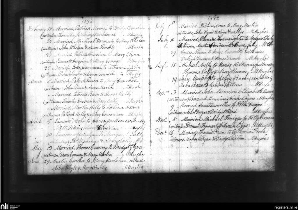 New Inn; County of Galway; Diocese of Clonfert. Marriages, Feb. 1832 to Dec. 1832