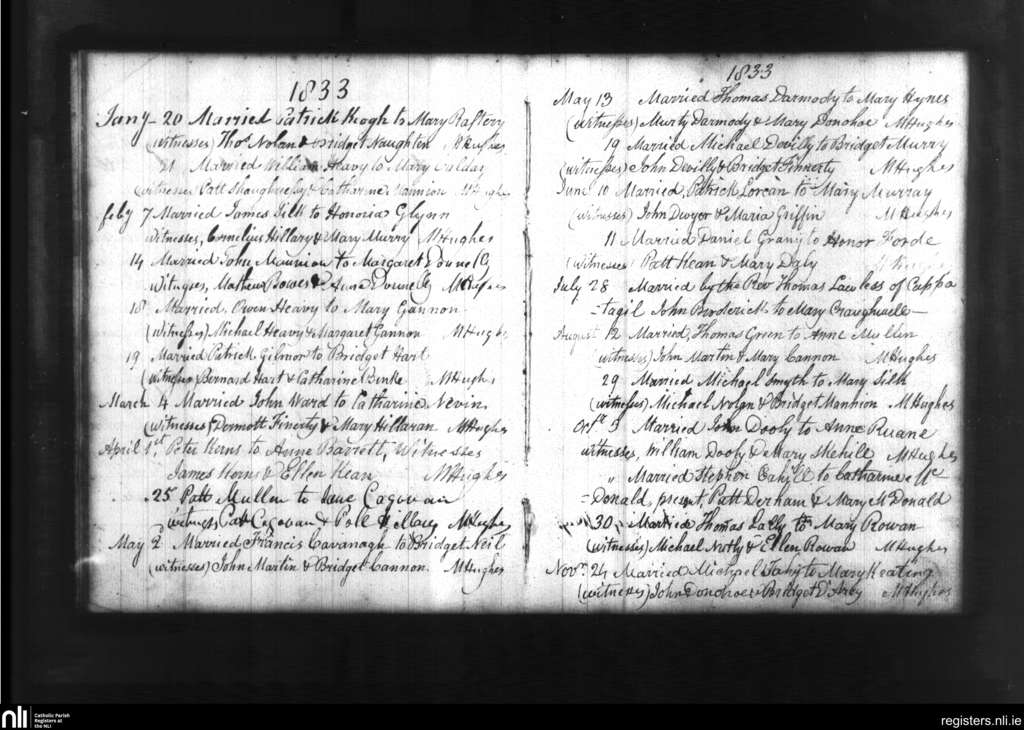 New Inn; County of Galway; Diocese of Clonfert. Marriages, Jan. 1833 to Nov. 1833