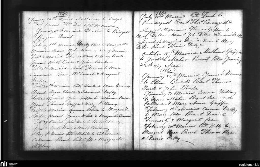 New Inn; County of Galway; Diocese of Clonfert. Marriages, Jan. 1840 to Feb. 1841