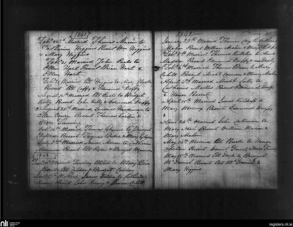 New Inn; County of Galway; Diocese of Clonfert. Marriages, Feb. 1841 to May 1842