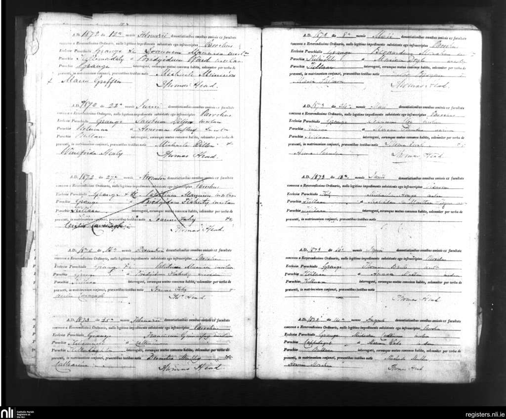 New Inn; County of Galway; Diocese of Clonfert. Marriages, Feb. 1872 to Aug. 1873