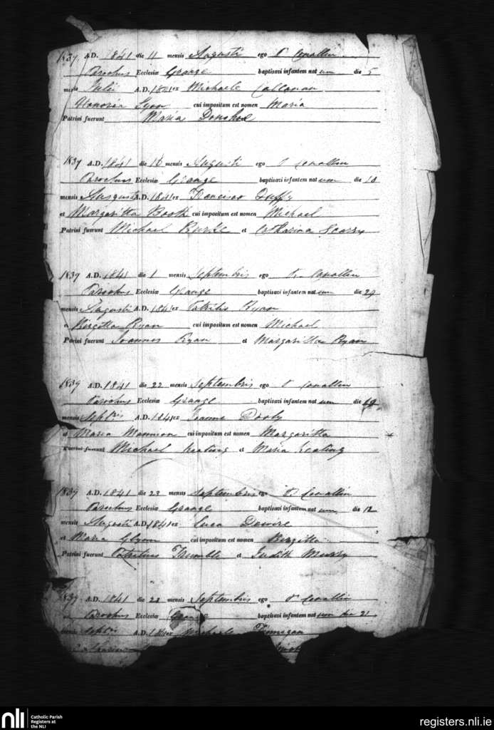 New Inn; County of Galway; Diocese of Clonfert. Baptisms, Aug. 1841 to Sep. 1841