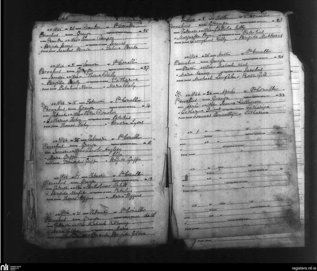 New Inn; County of Galway; Diocese of Clonfert. Baptisms, Dec. 1845 to Apr. 1846