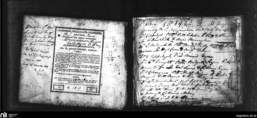 Cappataggle; County of Galway; Diocese of Clonfert. Baptisms, Marriages, Deaths, Jan. 1814