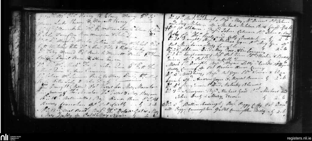 Cappataggle; County of Galway; Diocese of Clonfert. Baptisms, Marriages, Deaths, Jan. 1825 to Mar. 1825