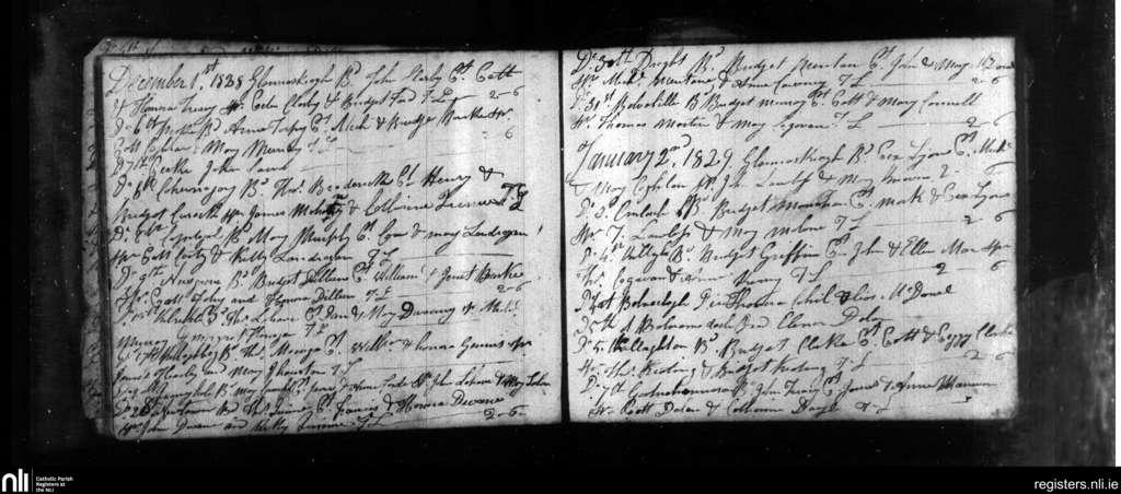 Cappataggle; County of Galway; Diocese of Clonfert. Baptisms, Marriages, Deaths, Dec. 1828 to Jan. 1829
