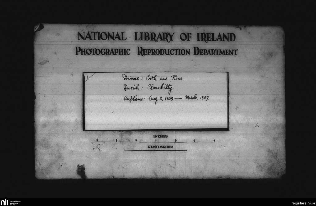 Clonakilty; County of Cork; Diocese of Cork and Ross. Baptisms