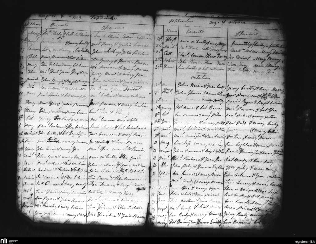 Clonakilty; County of Cork; Diocese of Cork and Ross. Baptisms, Aug. 1809 to Oct. 1809