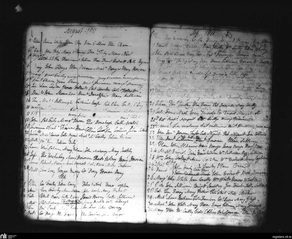 Clonakilty; County of Cork; Diocese of Cork and Ross. Baptisms, Aug. 1811 to Sep. 1811