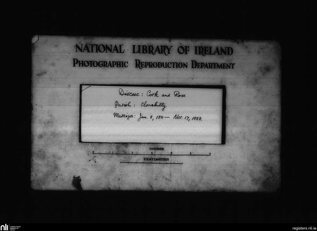 Clonakilty; County of Cork; Diocese of Cork and Ross. Marriages