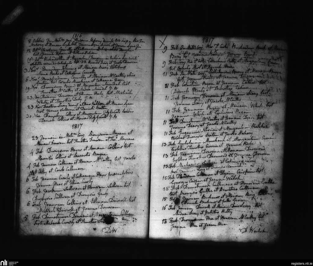 Clonakilty; County of Cork; Diocese of Cork and Ross. Marriages, Oct. 1816 to Feb. 1817